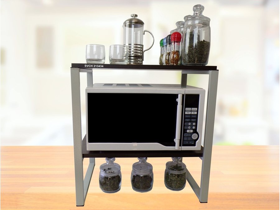 - Универсальная подставка для бытовой техники (микроволновой печи, кофемашины, тостера, электрического чайника и др) позволяет эффективно использовать место на кухне