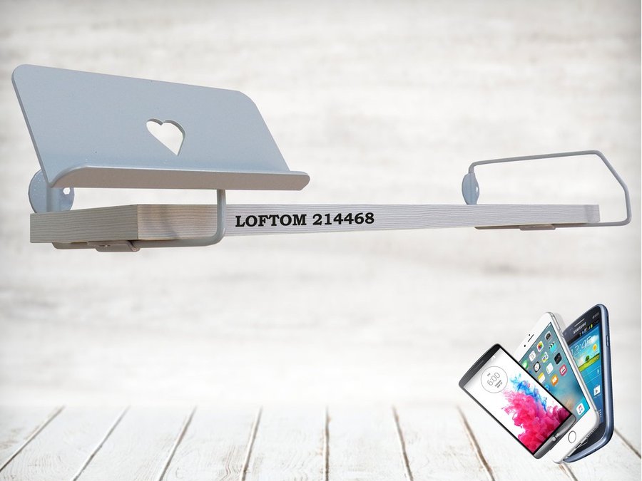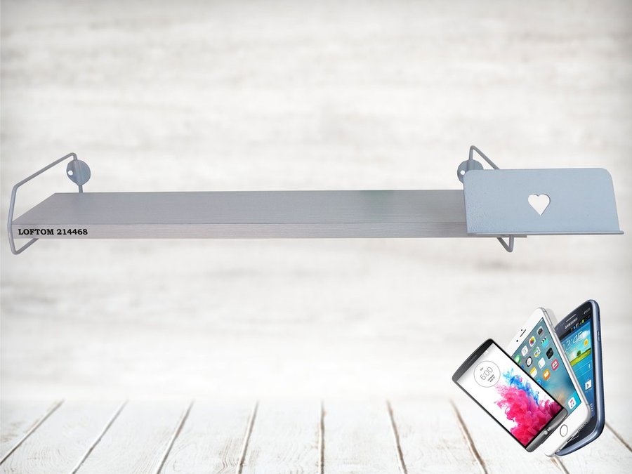 Полка с держателем телефона, серый "LOFTOM 214468" полка 54х10 см, сосна выбеленная