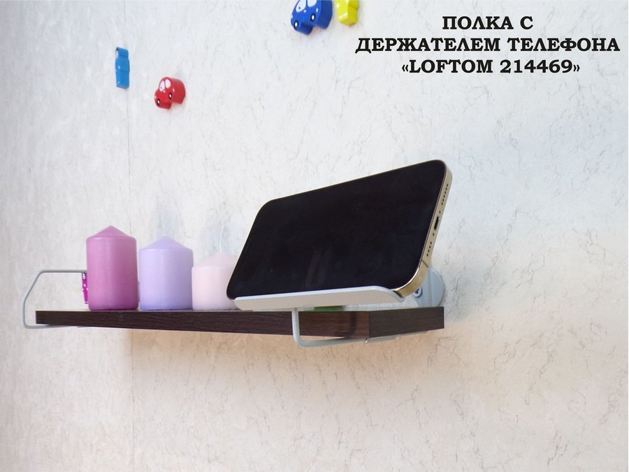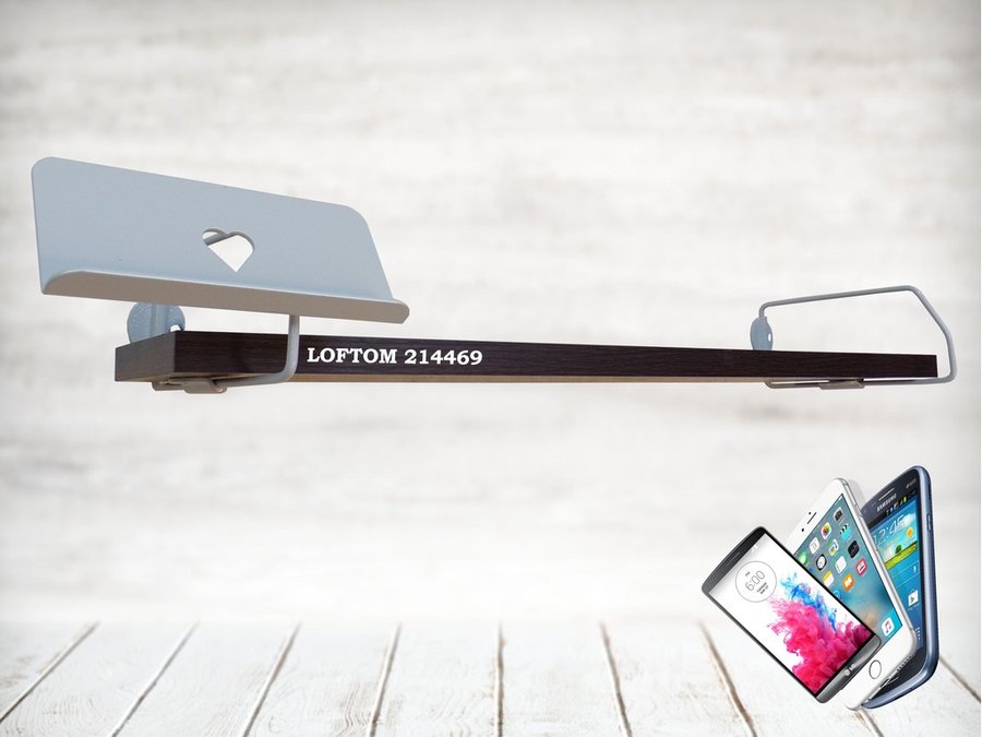 Полка с держателем телефона, серый "LOFTOM 214469" полка 54х10 см, венге