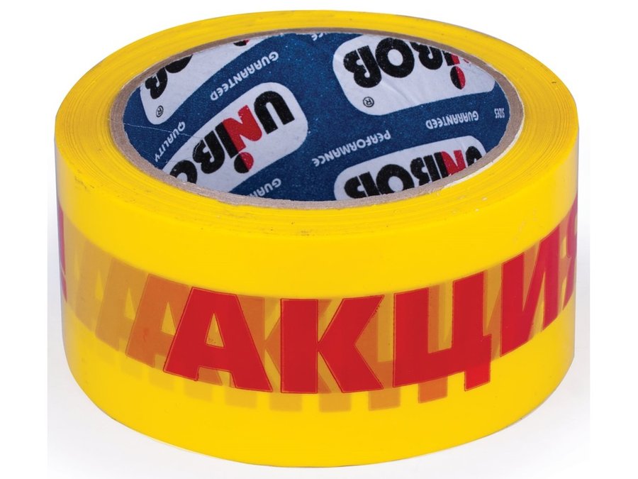 В корзину Купить в 1 клик Клейкая лента упаковочная 50 мм х 66 м, желтая,надпись "АКЦИЯ!",толщина 50 микрон,UNIBOB "BR-105857"