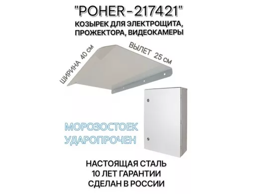 "POHER-217421" козырёк для защиты приборов и устройств от дождя и сосулек, ширина 41 см, вылет 27 см, стальной