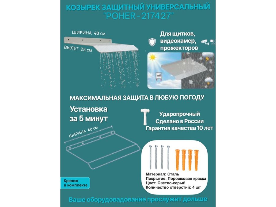 "POHER-217427" козырёк для защиты приборов и устройств от дождя и сосулек, ширина 41 см, вылет 27 см, стальной