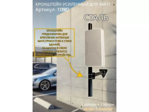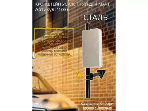 - Кронштейн предназначен для крепления к стене здания с выносом 30 см антенных мачт и трубостоек.