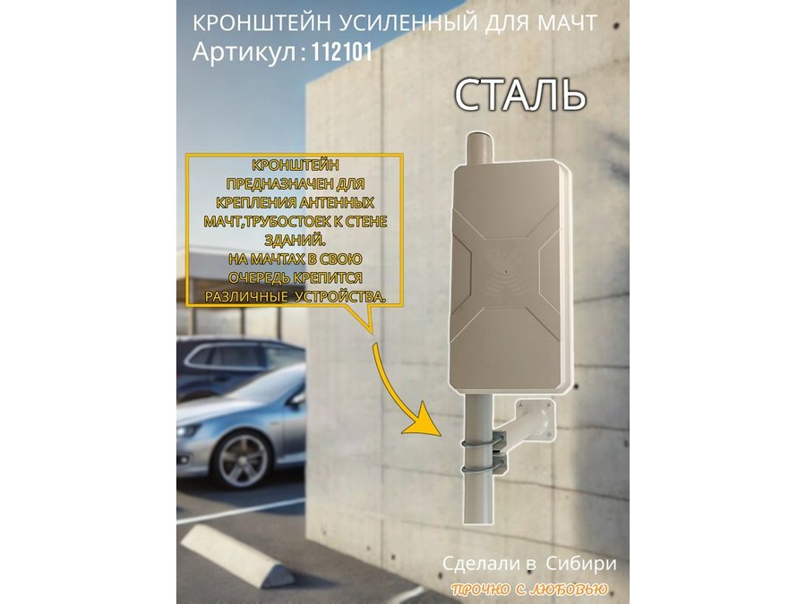 - Кронштейн предназначен для крепления к стене здания с выносом 30 см антенных мачт и трубостоек.