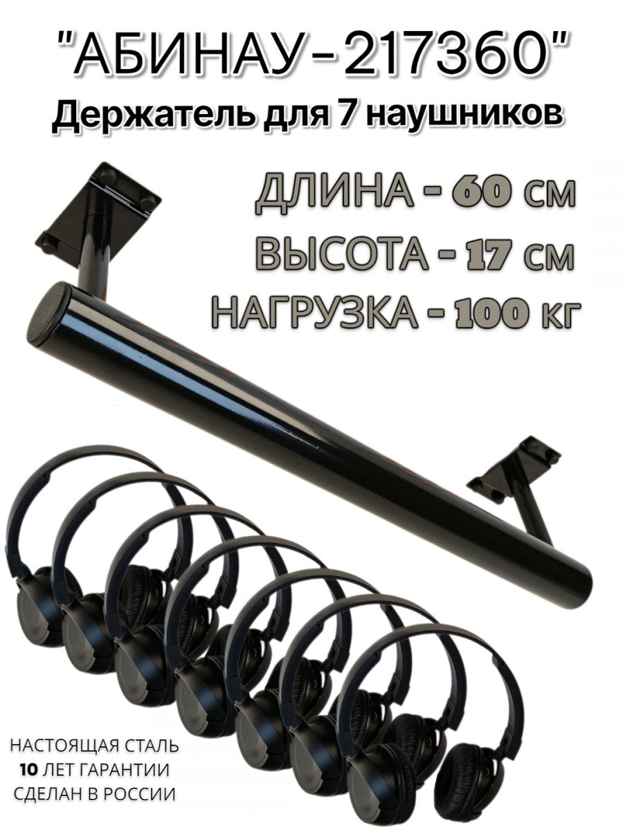 Создали по запросу мощнейший держатель для семи наушников. Крепится под стол или к стене. Выполнен из прочной стали, с крепежём и аккуратными колпачками на головки болтов. Нагрузочная способность до 150кг. Артикул кронштейна "АБИНАУ-217360"