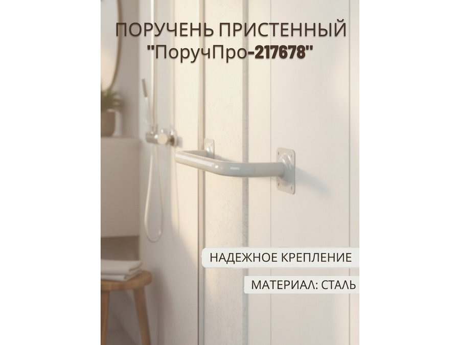Поручень прямой 87см "ПоручПро-216919" пристенный, для дома и улицы, вылет 16см, серый, диаметр 32мм